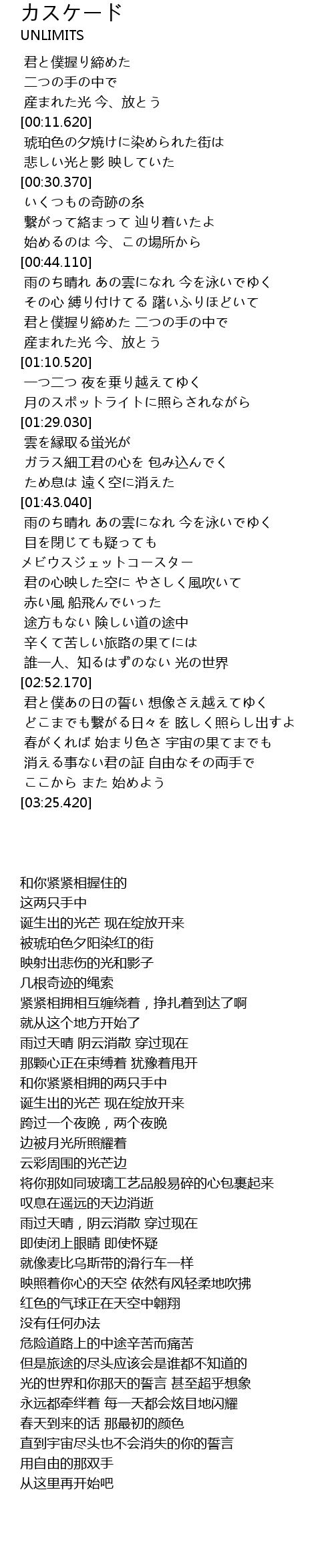 | [02:52.850] | 君と僕あの日の誓い 想像さえ越えてゆく |