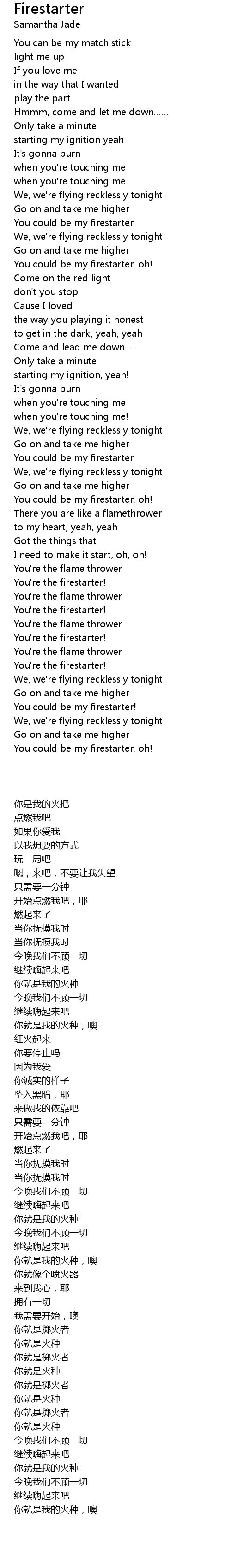 | [00:46.81] | You could be my firestarter |