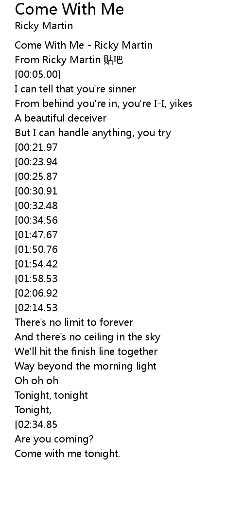 | [03:02.64][02:06.92][01:02.12] | Come with me tonight, oh oh oh |