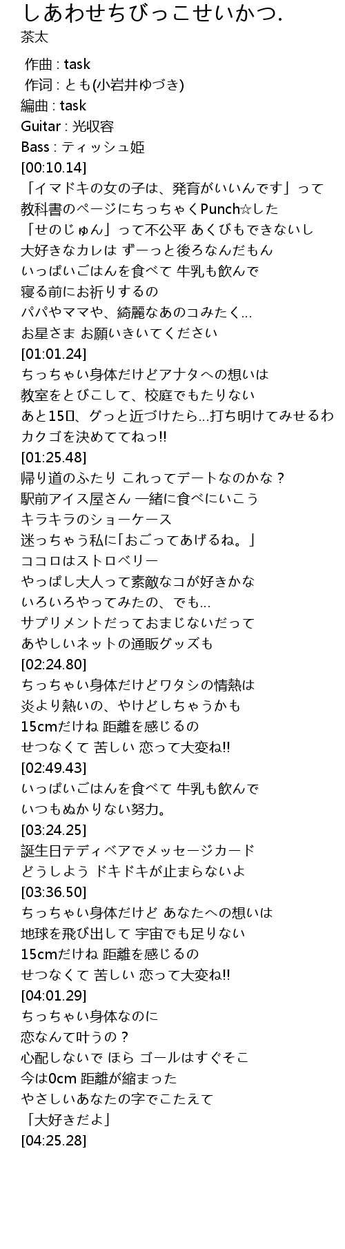 | [01:02.17] | ちっちゃい身体だけどアナタへの想いは |