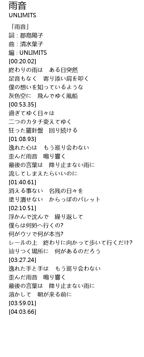 | [00:00.00] | 「雨音」 |