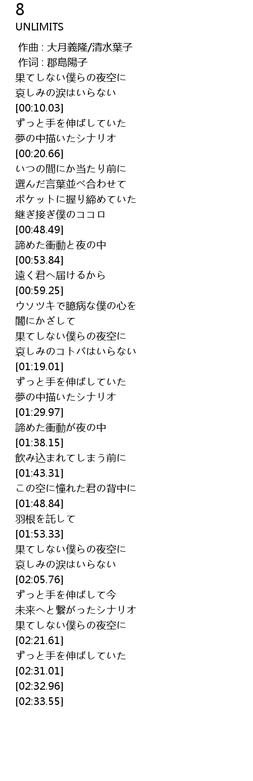 [01:56.48] 果てしない僕らの夜空に