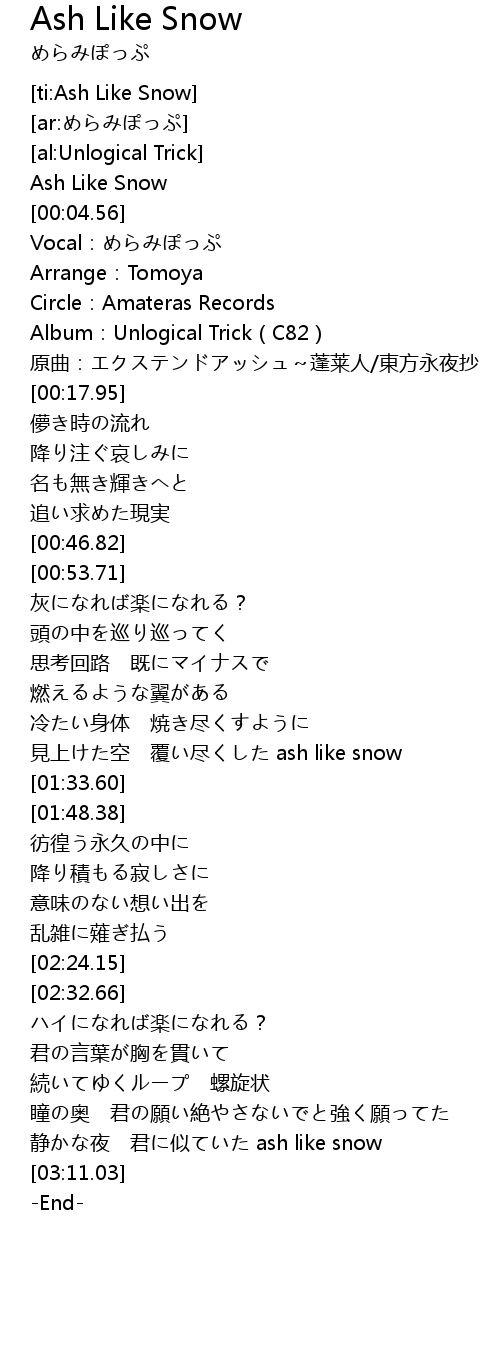 | [03:02.97] | 静かな夜 君に似ていた ash like snow |