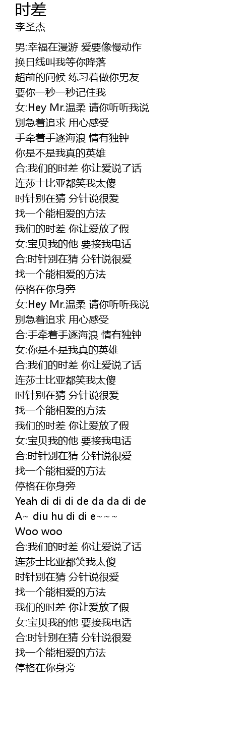 | [01:04.56] | 合:我们的时差 你让爱说了话 |
