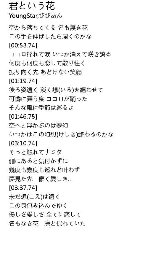 | [00:26.75] | 空から落ちてくる 名も無き花 |