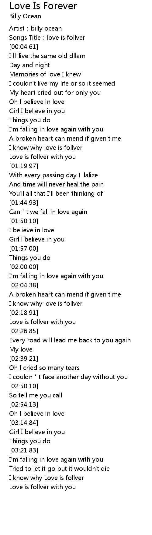 | [00:01.74] | Artist:billy ocean |