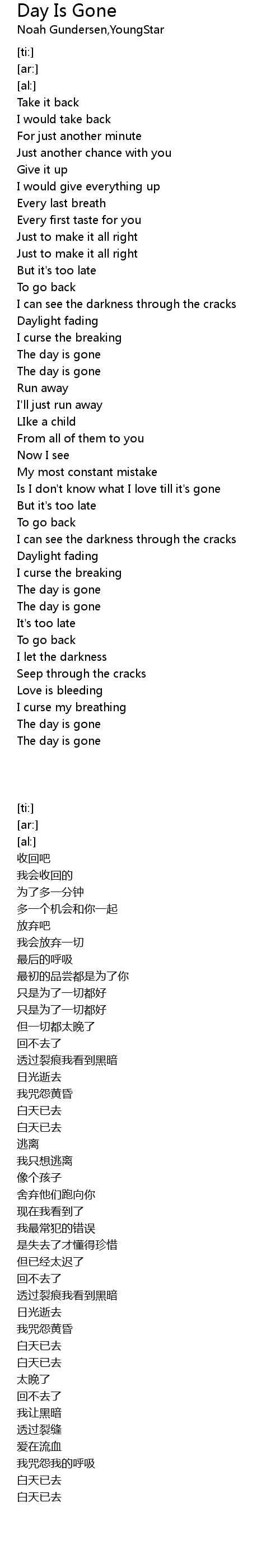 The day is gone |
