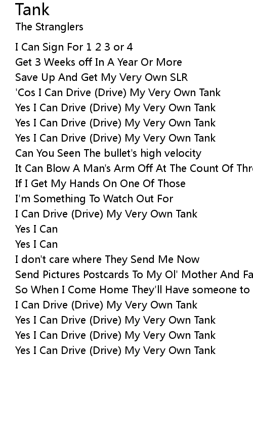 Yes I Can Drive (Drive) My Very Own Tank