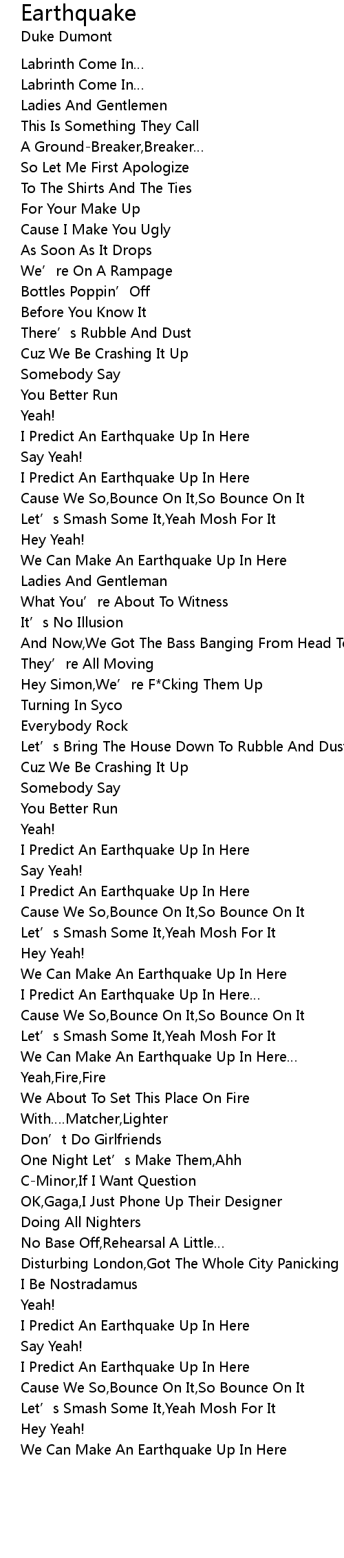| [01:14.15] | We Can Make An Earthquake Up In Here |