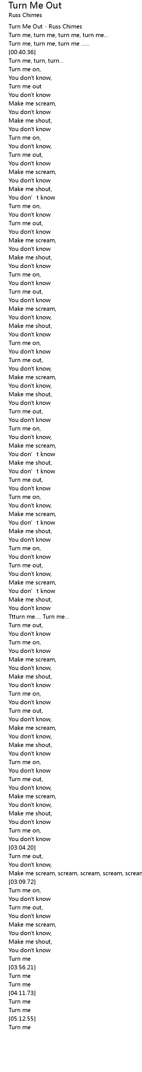 | [03:06.22] | Make me scream, scream, scream, scream, scream |