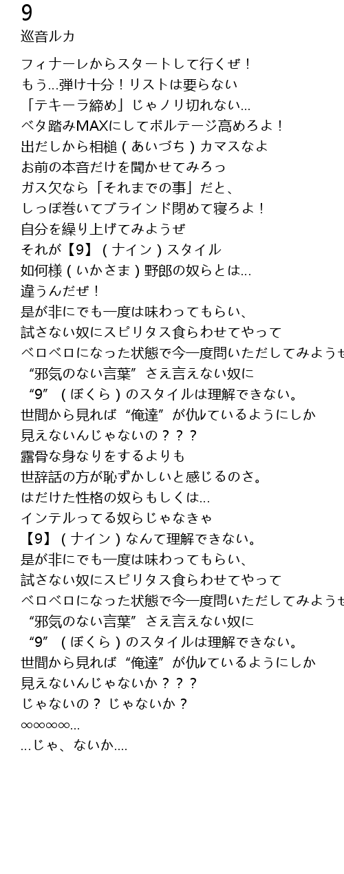 | “9”(ぼくら)のスタイルは理解できない。 | |