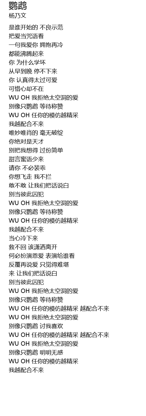 | [02:01.290] | 别像只鹦鹉 等待称赞 |