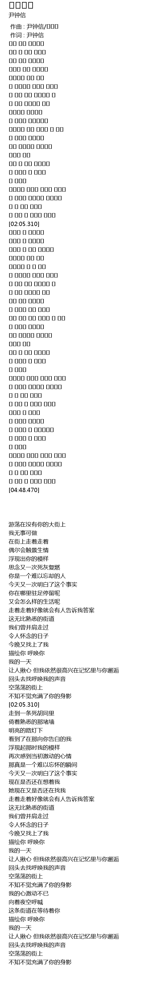 游荡在没有你的大街上 |