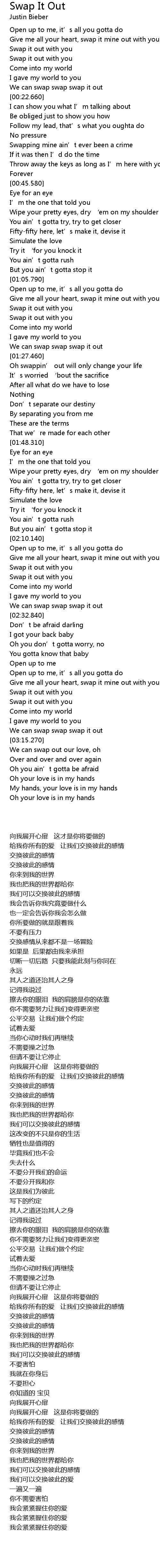 | [02:58.300] | Give me all your heart, swap it mine out with you |