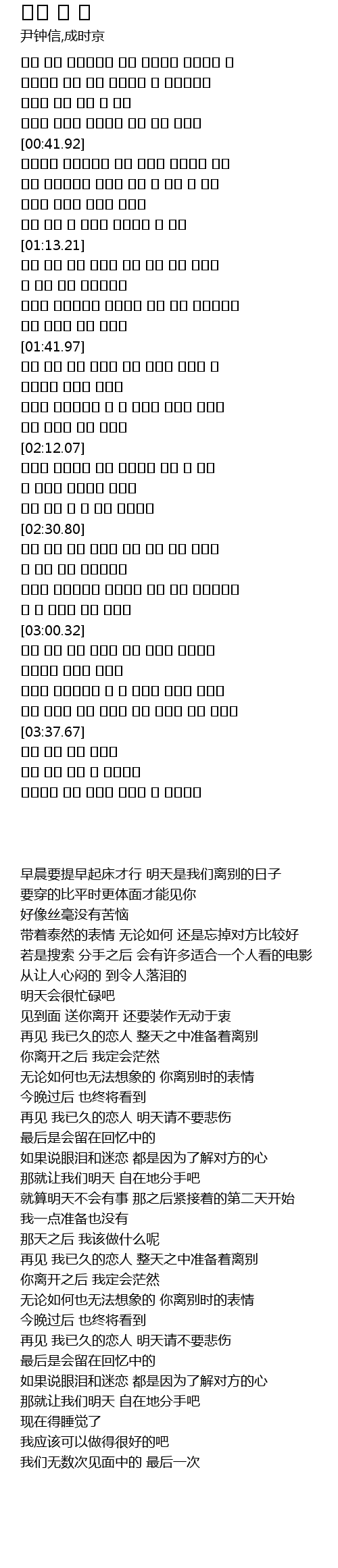 | [01:42.56] | 再见 我已久的恋人 明天请不要悲伤 |