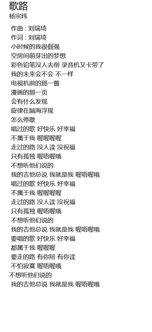 | [02:20.13] | 要唱的歌 好快乐 好幸福 |