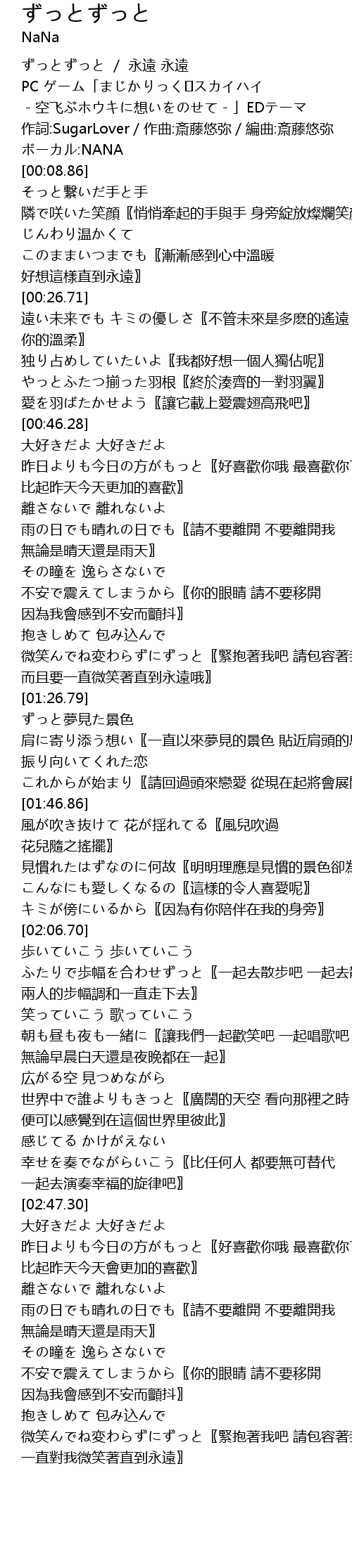 | [00:00.86] | ずっとずっと / 永遠 永遠 |