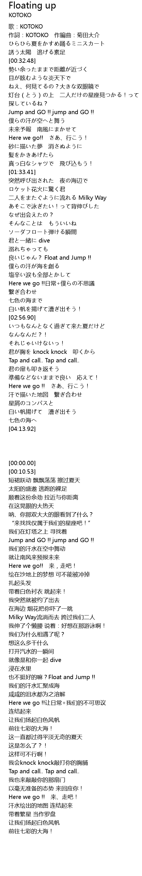 | [00:10.53] | 作詞:KOTOKO 作編曲:菊田大介 |
