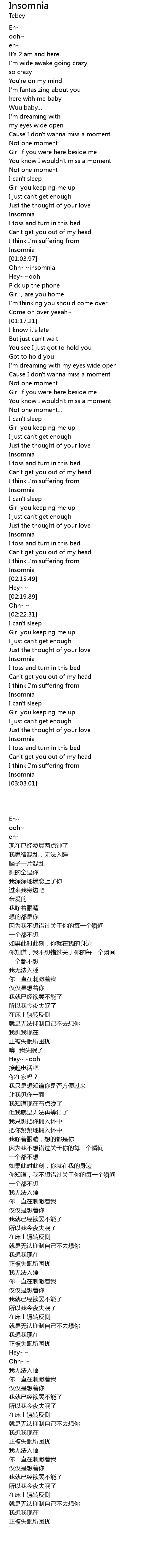 | [02:13.37] | 正被失眠所困扰 |