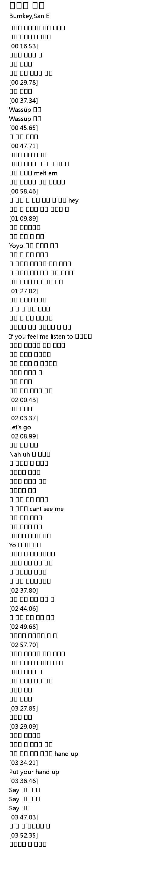 | [00:44.72] | Wassup 산이 |