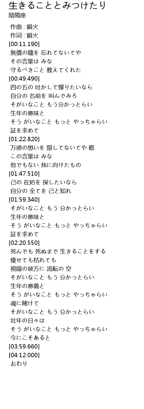 | [02:55.630] | 死んでも 死ぬまで 生きることをする |