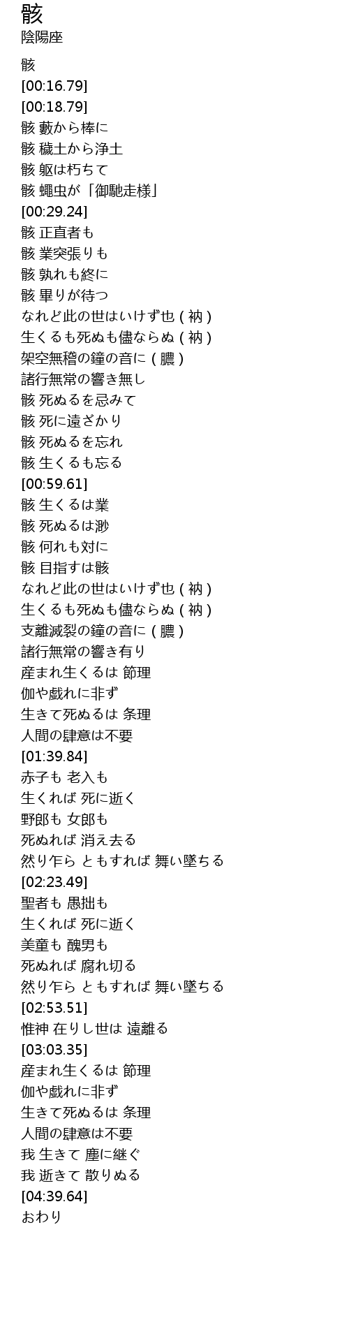 | [00:50.14] | 骸 死ぬるを忌みて |