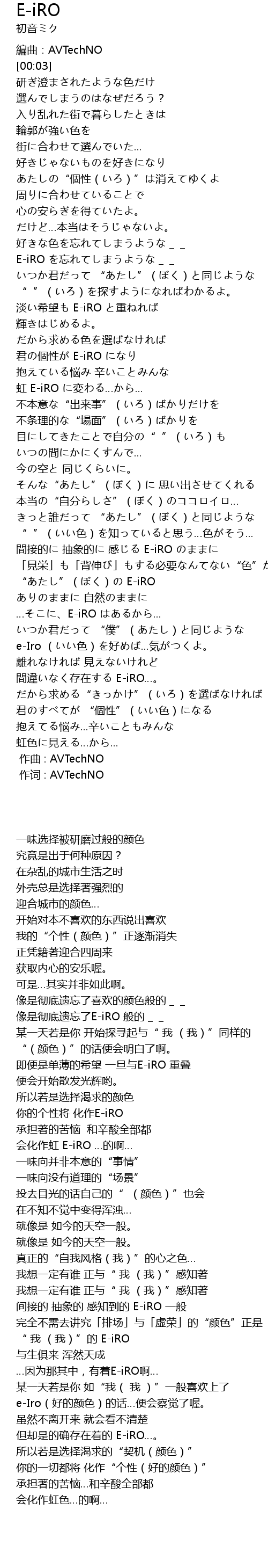 | [01:37] | 像是彻底遗忘了E-iRO 般的__ |