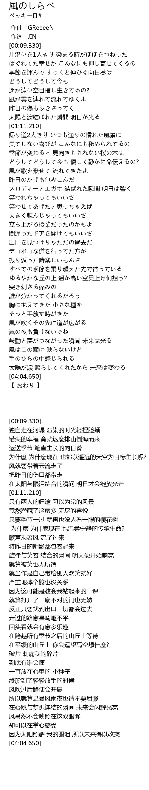 | [00:00.00] | 作曲 : GReeeeN |