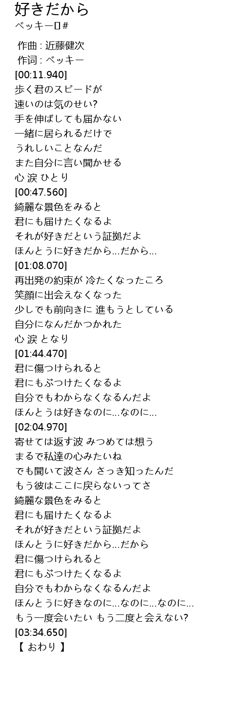| [02:53.580] | ほんとうに好きだから…だから |