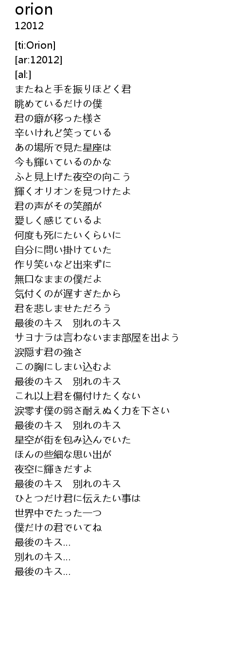 | [00:50.12] | 輝くオリオンを見つけたよ |