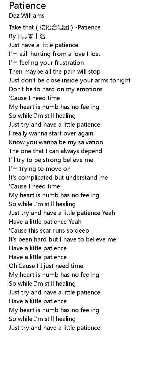 | [00:00.88] | Take that jie zhao he chang tuan Patience |