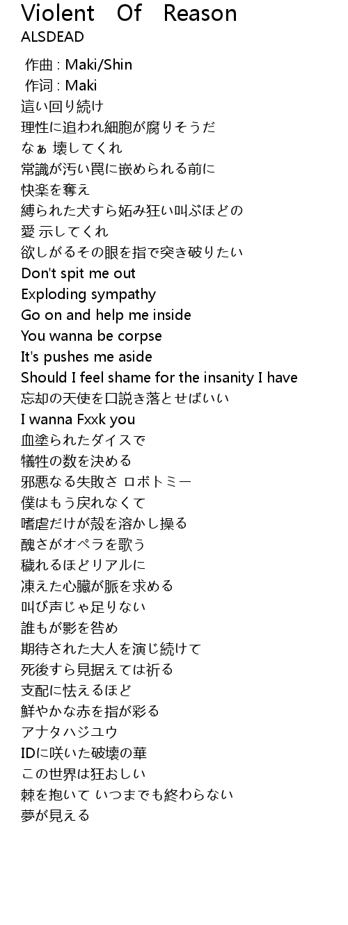 | [01:11.93] | 理性に追われ細胞が腐りそうだ |