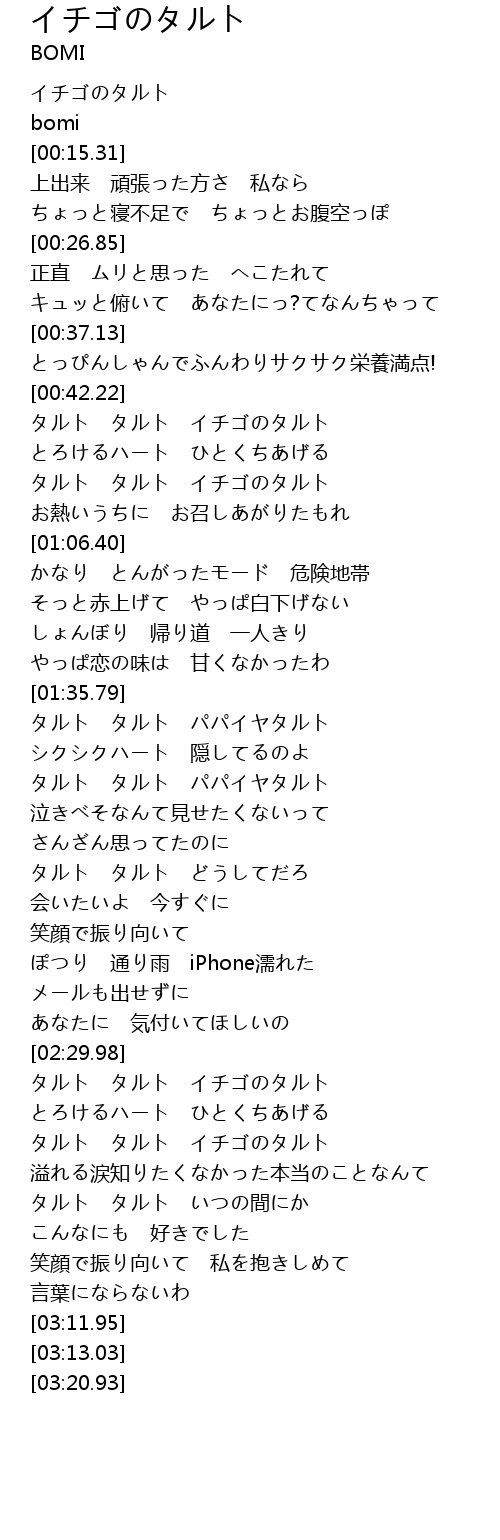 | [02:32.23] | タルト タルト イチゴのタルト |