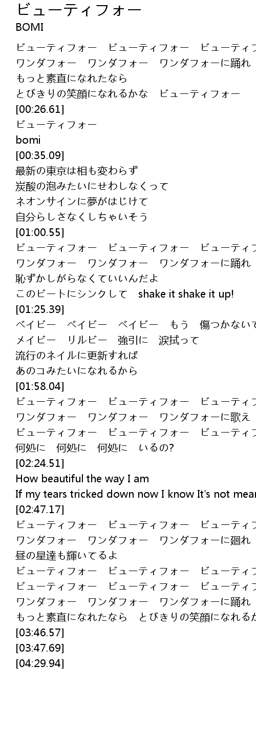 | [03:21.89] | ビューティフォー ビューティフォー ビューティフォーな私 |
