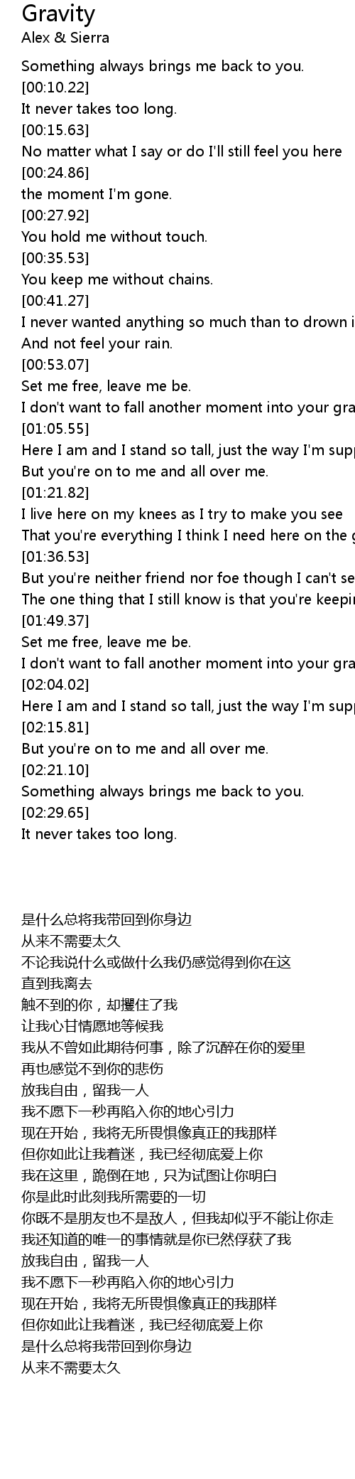 I don't want to fall another moment into your gravity. |