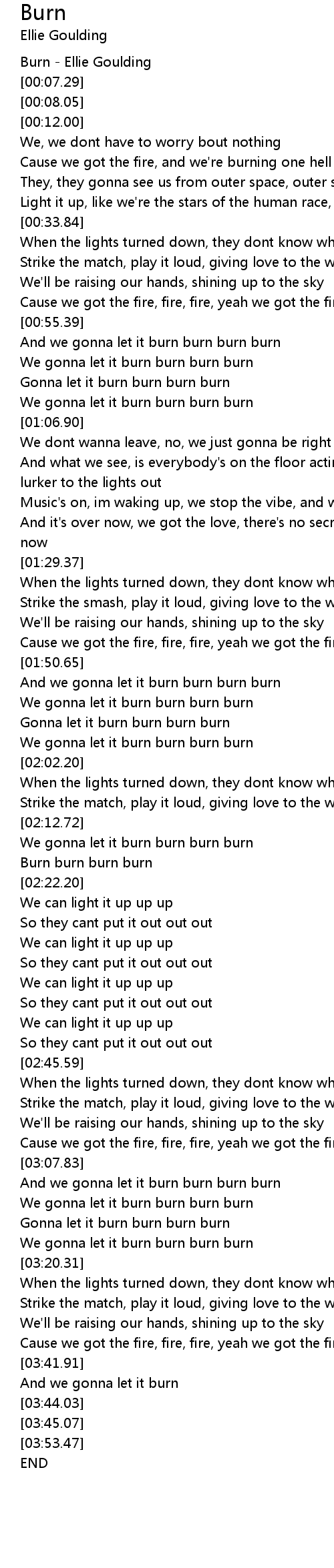 [00:00.73] Burn - Ellie Goulding