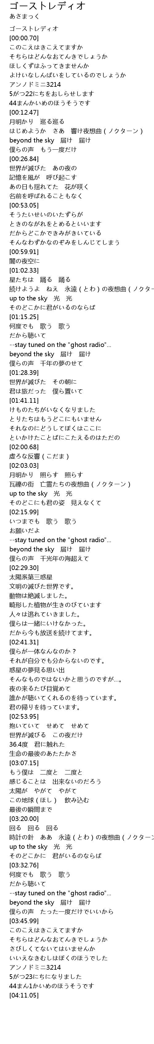 | [03:59.19] | このこえはきこえてますか |