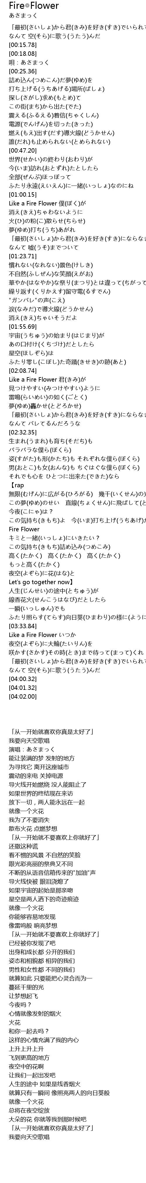| [03:34.08] | Like a Fire Flower |