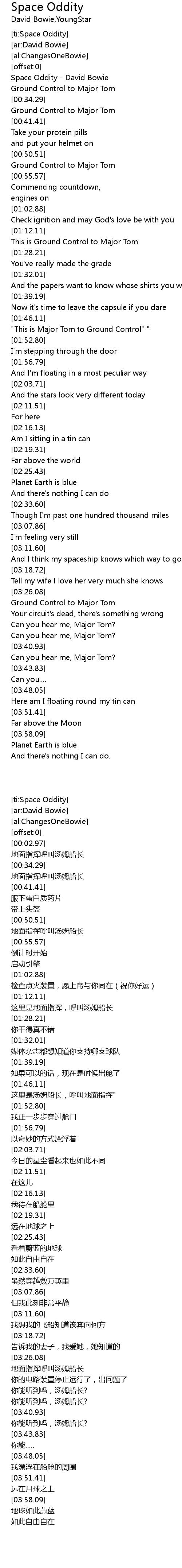 [ti:Space Oddity] |