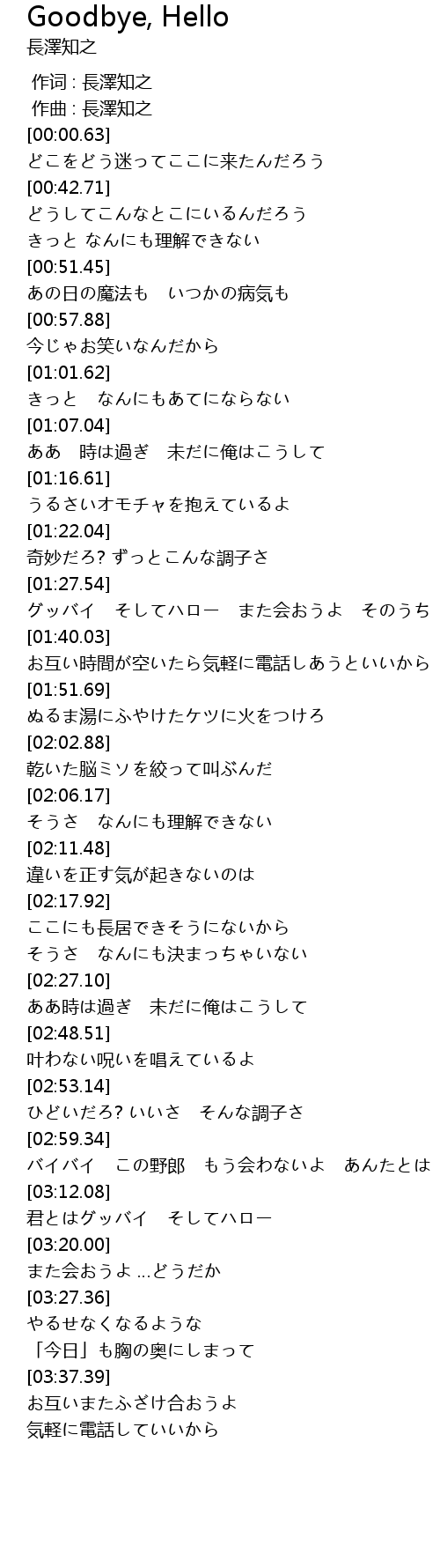 | [03:14.43] | 君とはグッバイ そしてハロー |