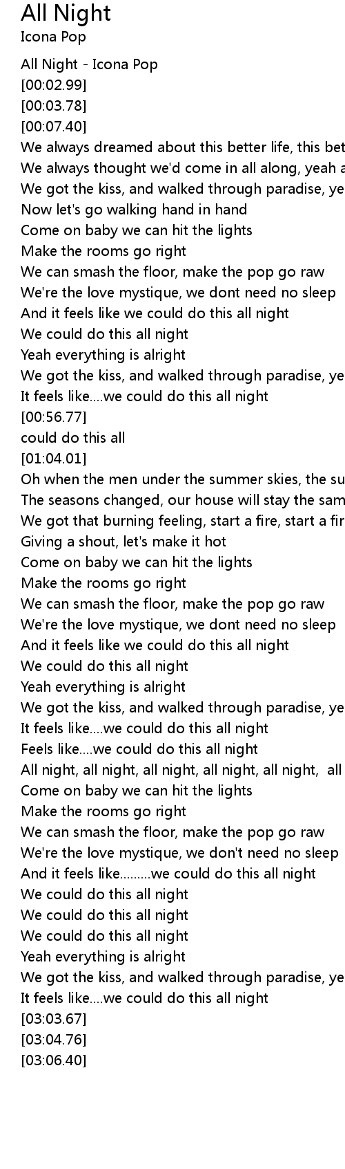 [02:05.99] All night, all night, all night, all night, all night, all night