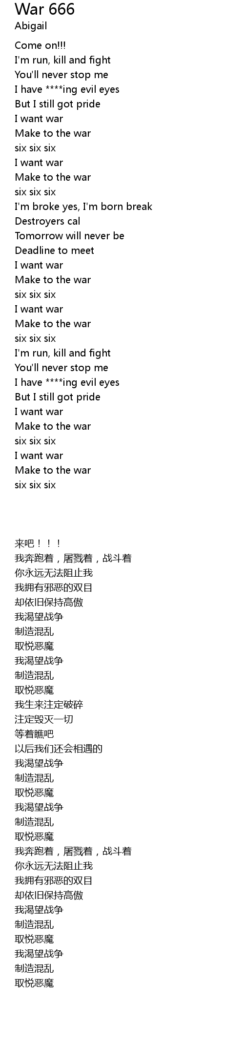| [00:23.641] | 我奔跑着,屠戮着,战斗着 |