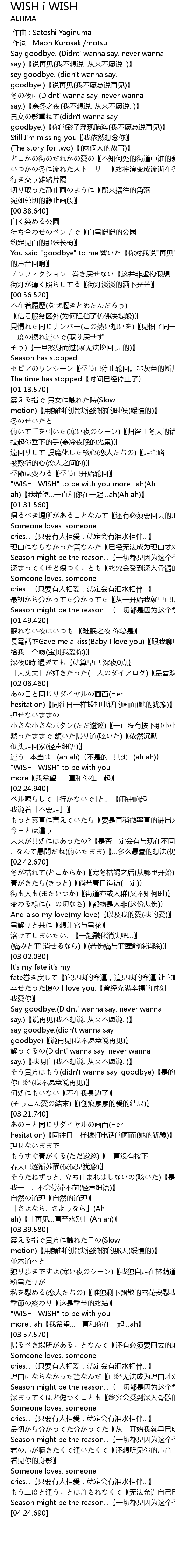 | [02:22.530] | "WISH i WISH" to be with you more〖我希望...一直和你在一起〗 |