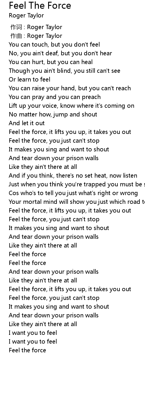 | [02:54.853] | Feel the force, it lifts you up, it takes you out |
