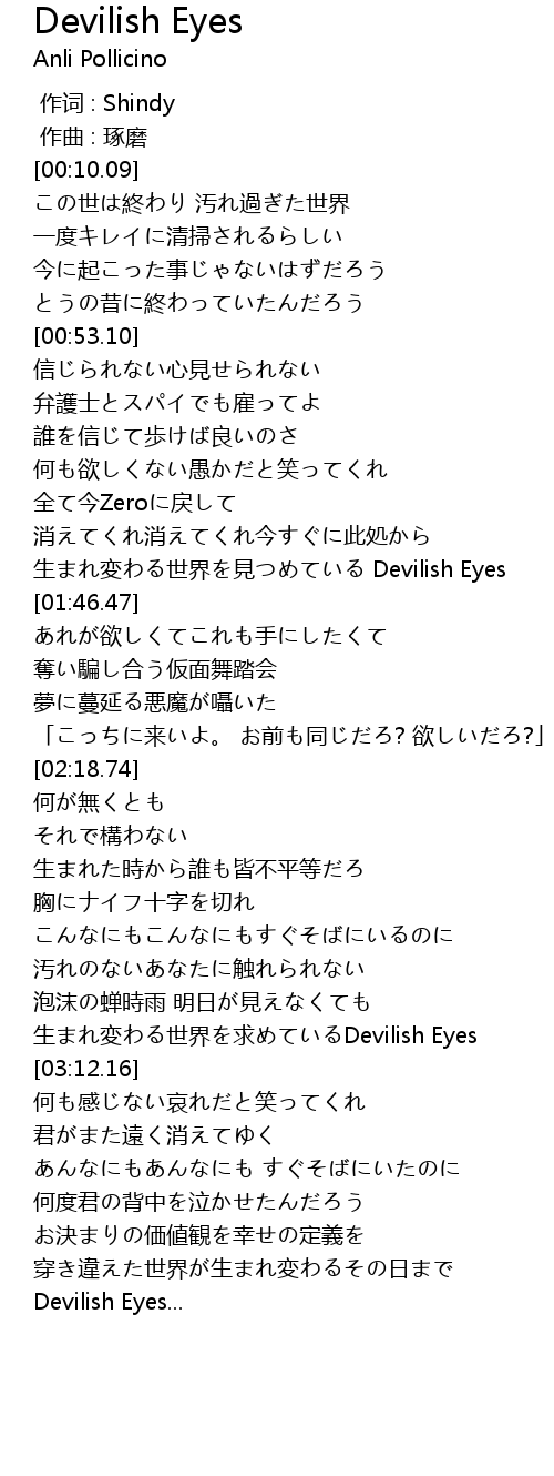 | [03:04.04] | 生まれ変わる世界を求めているDevilish Eyes |