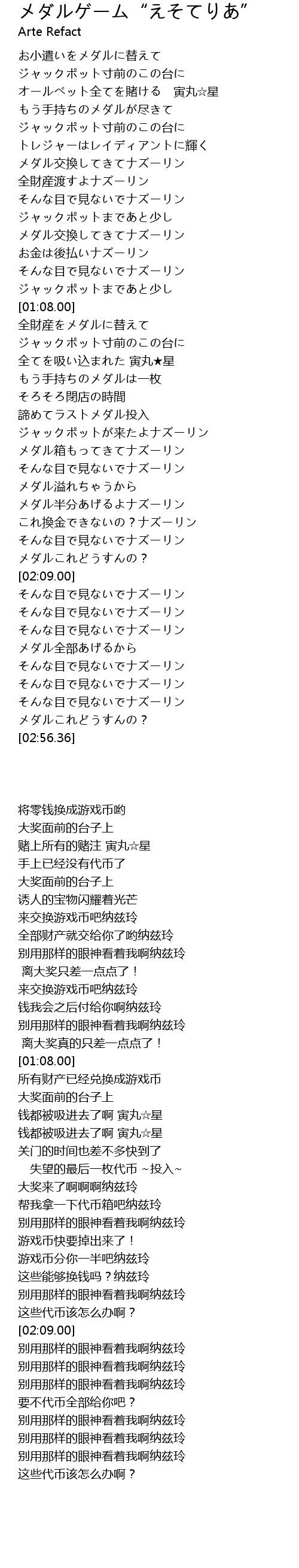 | [00:55.22] | 来交换游戏币吧纳兹玲 |