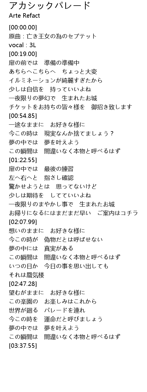 | [00:02.50] | 原曲:亡き王女の為のセプテット |