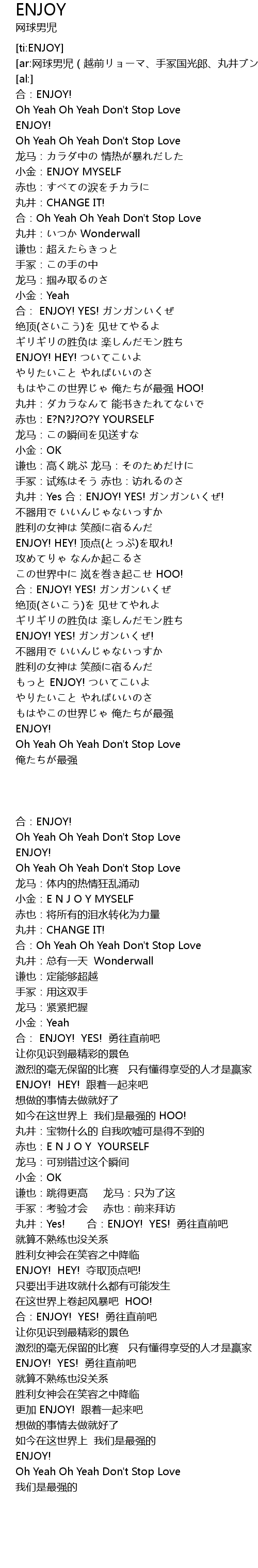 | [01:20.33] | 赤也:E N J O Y YOURSELF |