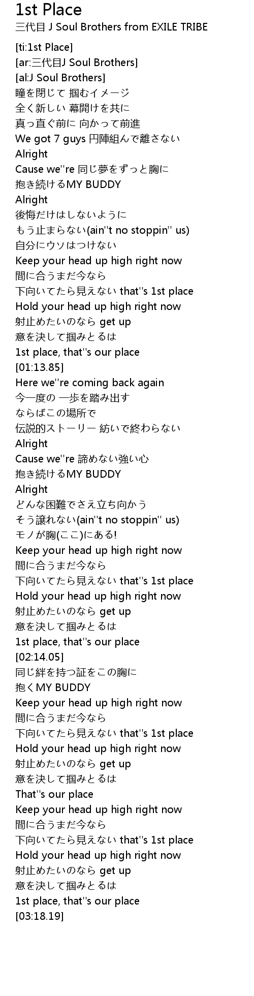 | [03:03.95] | 下向いてたら見えない that''s 1st place |