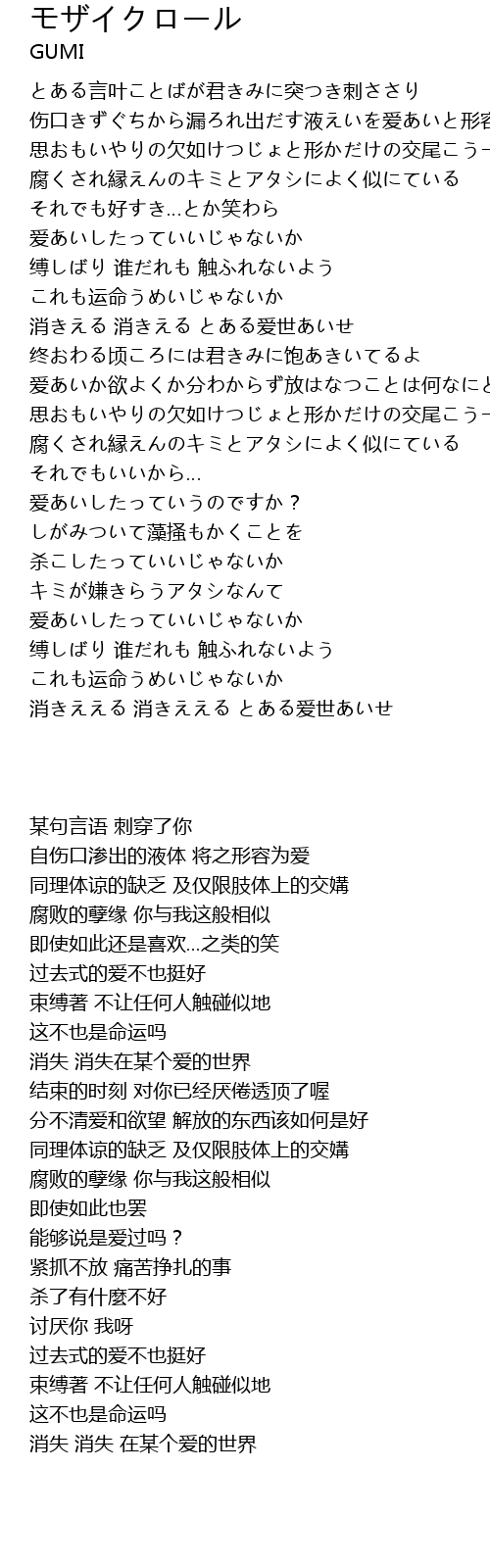 | [02:42.260] | 消失 消失 在某个爱的世界 |